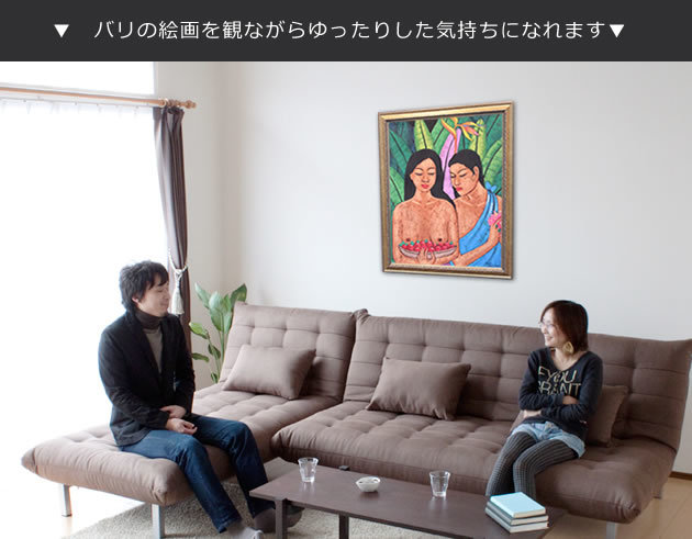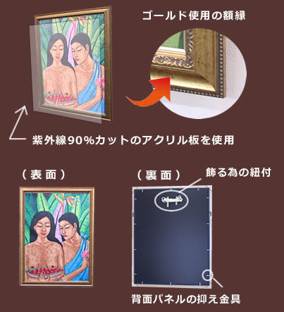 | 原産国 | 絵画:インドネシアバリ島 額縁:日本(オーダーメイド、壁掛紐付) |