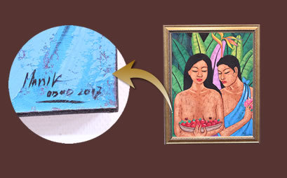 当店のバリ絵画には画家の直筆サインと証明書が付いています。これは画家が作品を承認したという証拠です。世界で一つしかない絵画という証明になります。
