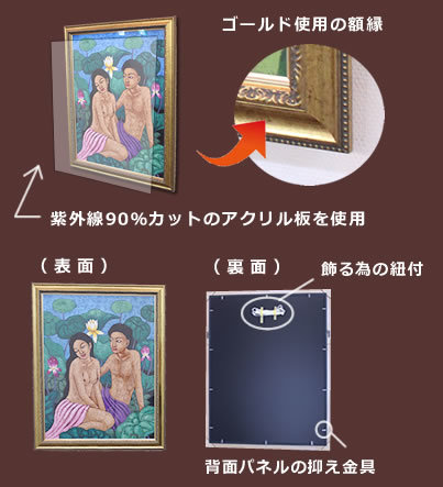 | 原産国 | 絵画:インドネシアバリ島 額縁:日本(オーダーメイド、壁掛紐付) |