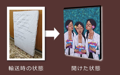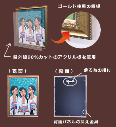 | 原産国 | 絵画:インドネシアバリ島 額縁:日本(オーダーメイド、壁掛紐付) |