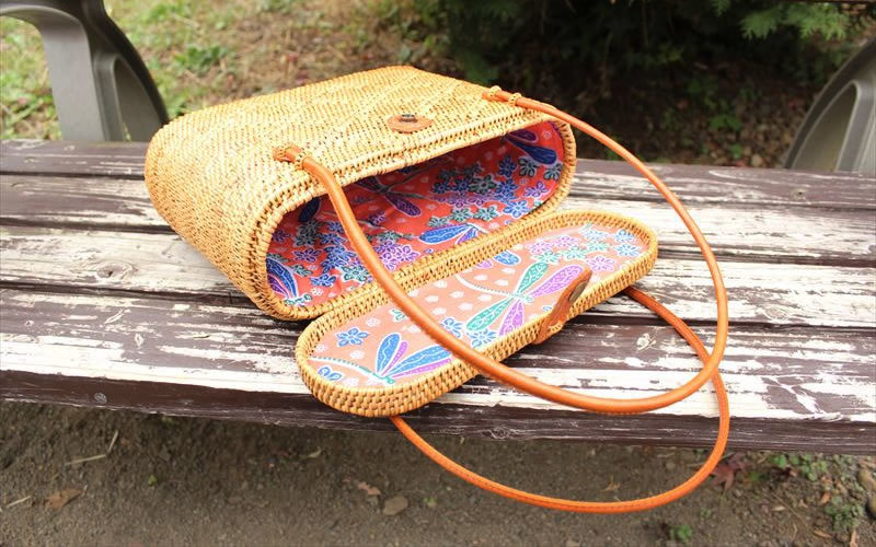 当店のアタバッグは、内側にバリ伝統の布地「バティック(更紗)」を使用しています。バッグを開けたら可愛い布地が見えるので、外からも見え、ファッションのアクセントにもなります。