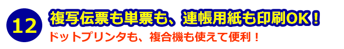 コクヨ納品書などの市販の複写伝票から、コピー用紙を使った単票まで幅広く、様々な伝票を印刷できます。