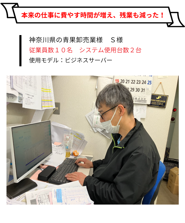 営業の方が定期的に訪問してくれるので、日常的にコミュニケーションが取れて安心です。他の青果業の事例も紹介してもらえるため、