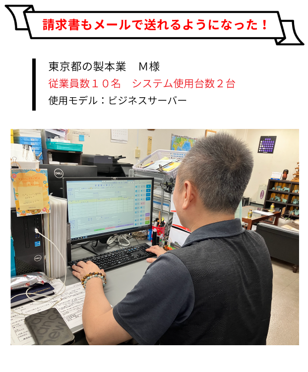見積書が印字化になり、納品書と請求書もシステムで紐づけされ、同じ内容を何度も入力しなくて良くなりました。その他、手書きだった伝票も印字化に成功しました。
