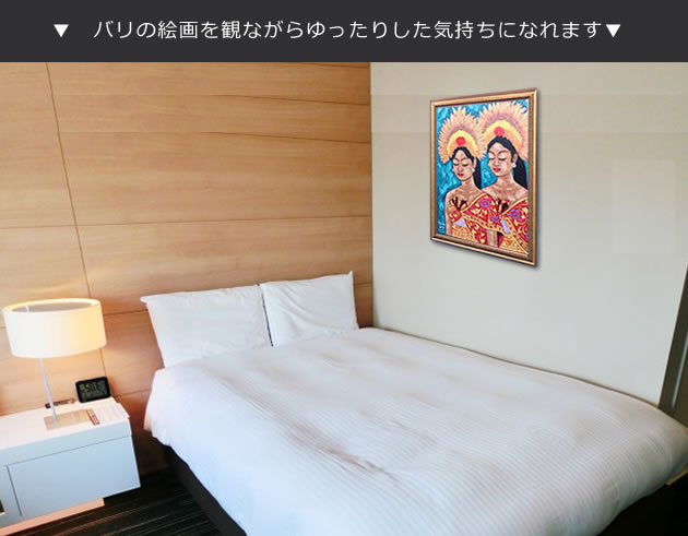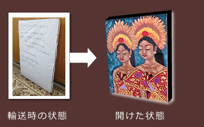 | 原産国 | 絵画:インドネシアバリ島 額縁:日本(オーダーメイド、壁掛紐付) |