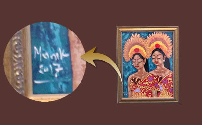 当店のバリ絵画には画家の直筆サインと証明書が付いています。これは画家が作品を承認したという証拠です。世界で一つしかない絵画という証明になります。