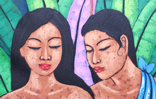 バリ絵画は全て油絵具で描かれています。絵具の凹凸や肉質を感じ、色鮮やかな配色に観る人を惹きつけます。また、世界でたった一つの絵画という特別感を感じることが出来ます。