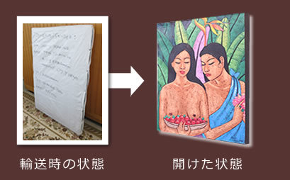 | 原産国 | 絵画:インドネシアバリ島 額縁:日本(オーダーメイド、壁掛紐付) |