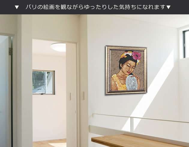 | 原産国 | 絵画:インドネシアバリ島 額縁:日本(オーダーメイド、壁掛紐付) |