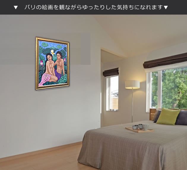 | 原産国 | 絵画:インドネシアバリ島 額縁:日本(オーダーメイド、壁掛紐付) |