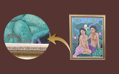 当店のバリ絵画には画家の直筆サインと証明書が付いています。これは画家が作品を承認したという証拠です。世界で一つしかない絵画という証明になります。