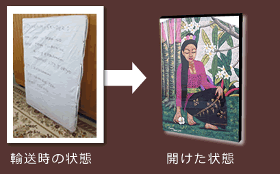 | 原産国 | 絵画:インドネシアバリ島 額縁:日本(オーダーメイド、壁掛紐付) |
