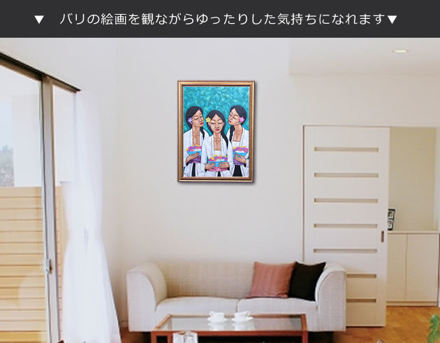 | 原産国 | 絵画:インドネシアバリ島 額縁:日本(オーダーメイド、壁掛紐付) |