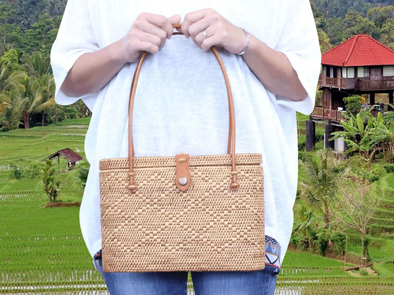 当店のアタバッグは、アタ素材100%のアタバッグを販売しております。バリ島では数多くのアタ製品が流通しておりますが、原価を下げる為に部分的に竹を使用する商品が多くあります。しかし、当店は100%アタ素材にこだわりました。100%アタ素材を使うことにより、耐久性や品質が上がり、末長く使うことが出来ます。