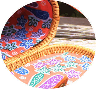当店のアタバッグは、内側にバリ伝統の布地「バティック(更紗)」を使用しています。バッグを開けたら可愛い布地が見えるので、外からも見え、ファッションのアクセントにもなります。