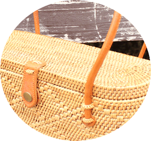 当店のアタバッグは、バリ島ウブド村の工房で働く、アタバッグの職人たちが熟練した匠の技で丹精込めて作っております。アタを編み上げる技と同様、持ち手部分や留め部分などの細部までこだわって作っています。持ち手には本皮を使うバッグもあるので、様々な技術が必要となります。長年の経験から壊れにくく、長持ちさせる為の工夫を凝らしています。長く持てば、持つほどアタバッグの艶や良くなり、味が出てきます。