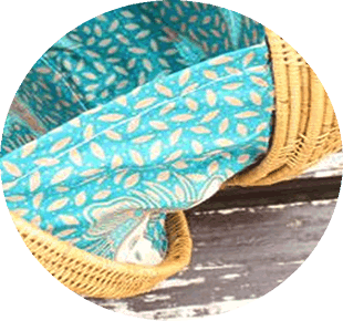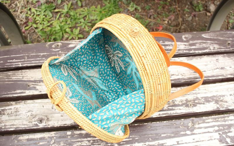 当店のアタバッグは、内側にバリ伝統の布地「バティック(更紗)」を使用しています。バッグを開けたとき、外から可愛い布が見えるのでファッションのアクセントにもなります。