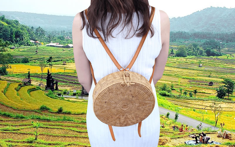 当店のアタバッグは、バリ島ウブド村の工房で働く、