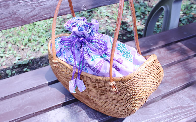 当店のアタバッグは、内側にバリ伝統の布地「バティック(更紗)」を使用しています。外からも可愛い布地が見えるので、ファッションのアクセントにもなります。
