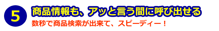 商品の選択方法には、略号、コード、名称、フリガナ、分類、バーコード入力、取引回数順があり、探しやすい方法を選べて、すぐに呼び出したい商品データが表示されます。検索に時間を掛けることなく、スピーディーに伝票作成が出来ます。(下図を参照下さい)
