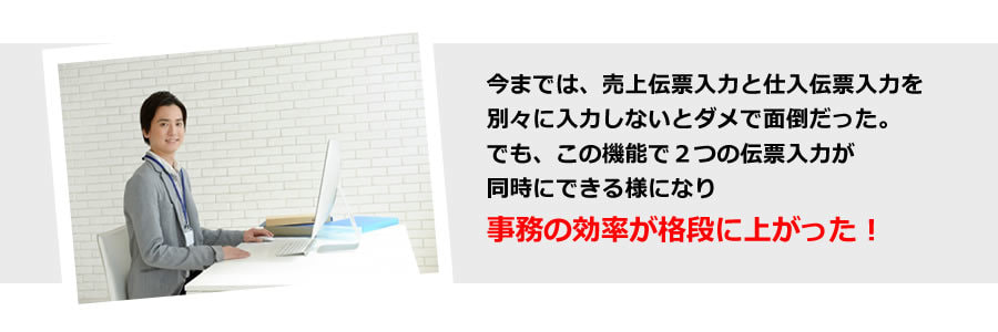今までバラバラに入力していた売上伝票入力と仕入伝票入力を同時に行うことで、