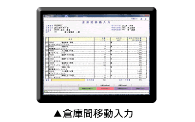 倉庫別の実在庫数量の管理が可能。商品ごとに主倉庫の設定ができるので伝票入力時に都度倉庫を選択する必要がありません。また、倉庫間の商品移動も簡単に入力画面から行え、商品の総数量も一覧表や照会画面から確認できます。