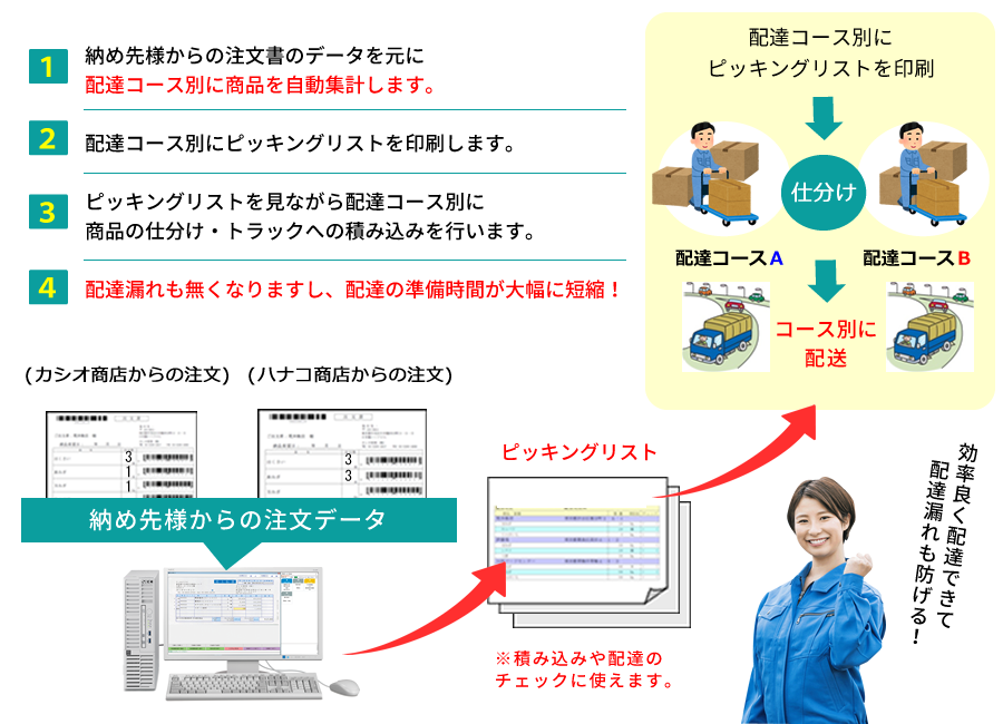 自動集計された正確なピッキングリストで配達漏れを防ぎます!