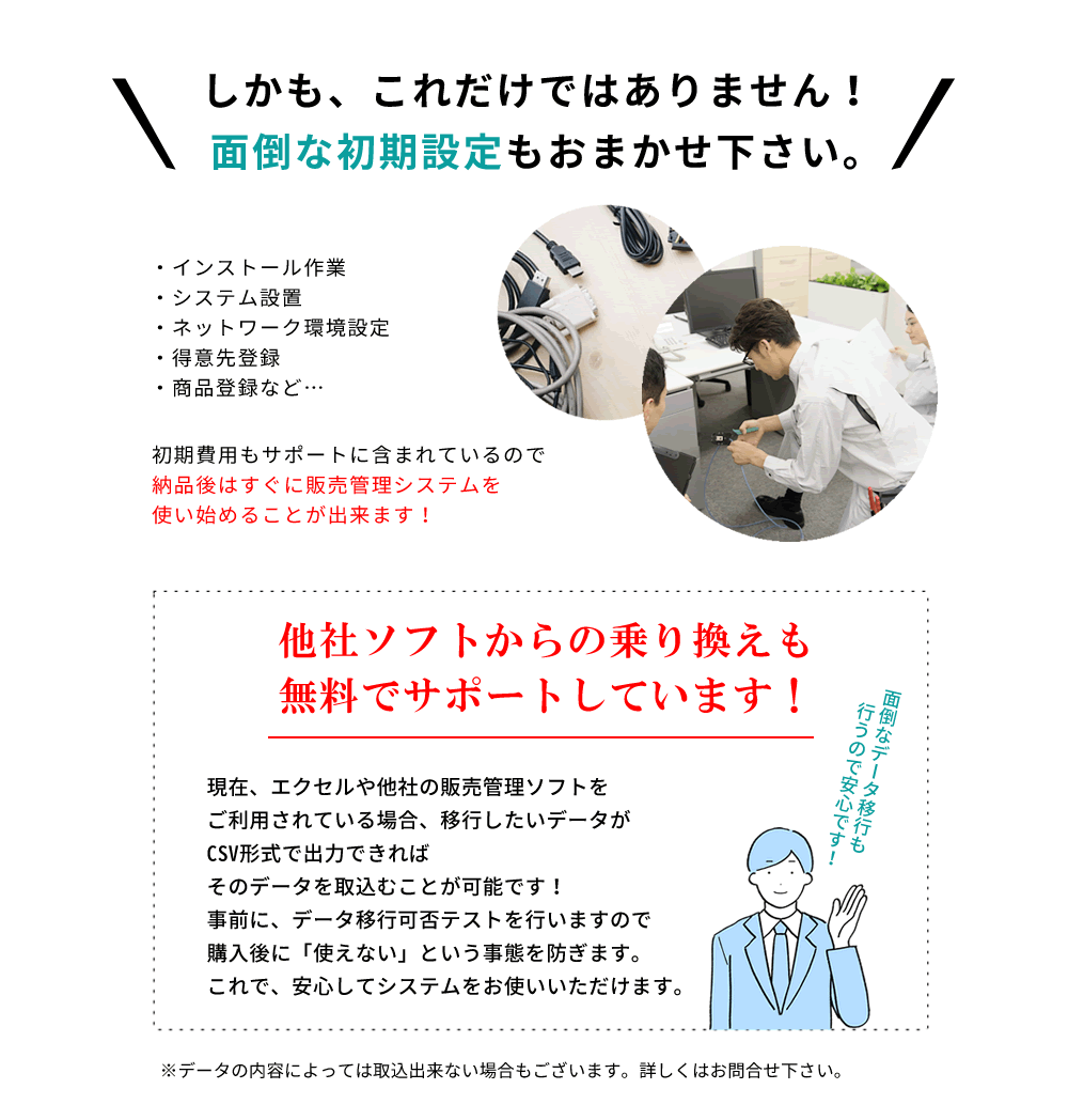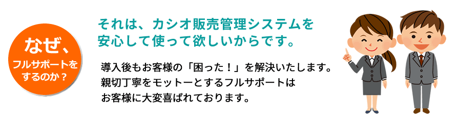 カシオEX販売管理システムは導入した会社の事務の流れに合わせてシステムを構築します。この点が「使いやすい販売管理システム」とご評価をいただいている最大の理由です。ところが、お客様を取りまく状況は変化し、伝票の仕様や事務処理の流れも変わります。すると導入した販売管理システムが「使いやすい販売管理システム」とは言えない状態になるかもしれません。お客様の変化に対応し「いつまでも使いやすい販売管理システム」として喜んでお使いいただけるように私ども東洋通信はサポートをしてまいります。そのため営業エリアは、私どものサポート・サービスを提供できるエリアに限定させていただいております。