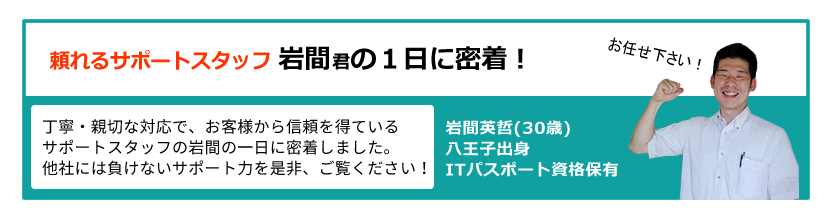 しれません。そこで東洋通信では「お客様サポートシステム」を導入!このシステムはお客様への訪問状況、電話質問など必要な情報を毎日登録しています。これにより、訪問間隔、お仕事状況、ご要望などの情報が社内で共有でき、様々なご要望にも漏れなく対応可能に!また、定期的に詳細なシステムの見直しを行い、快適に使い続け為のサポートをいたします!